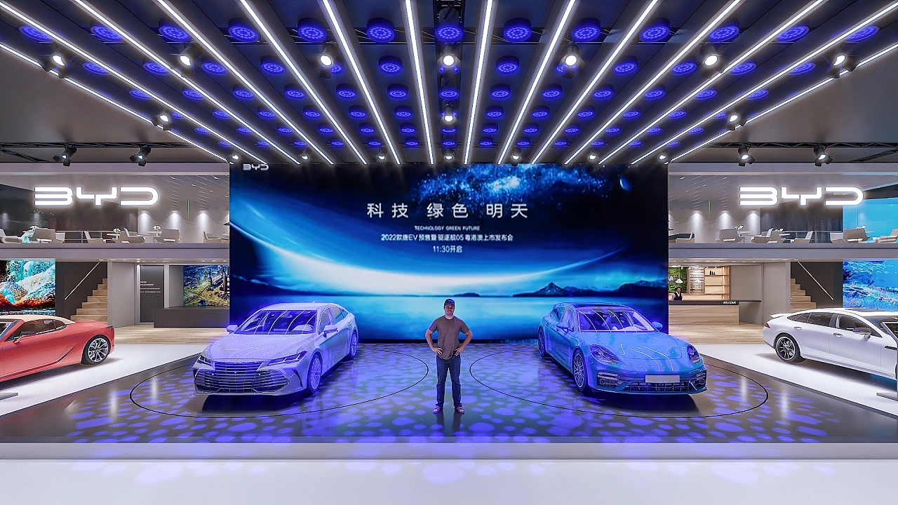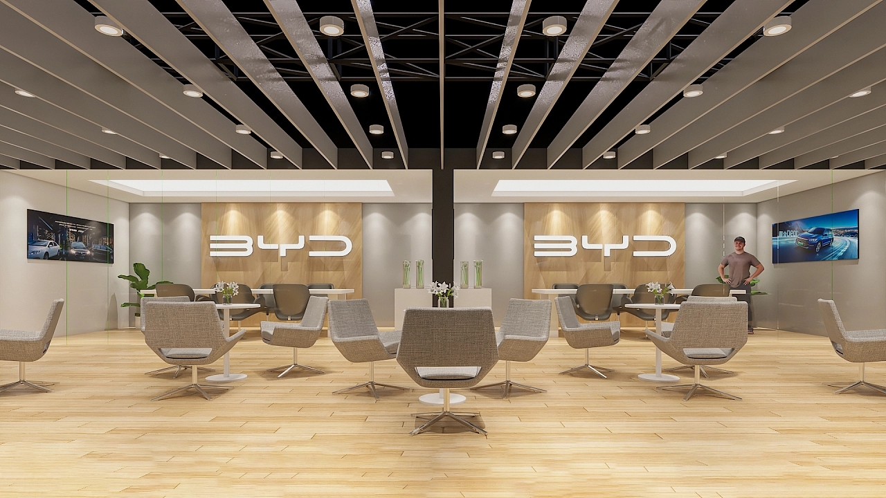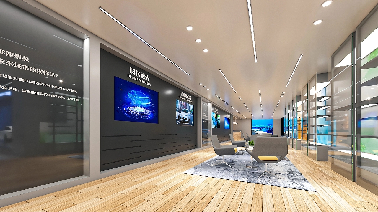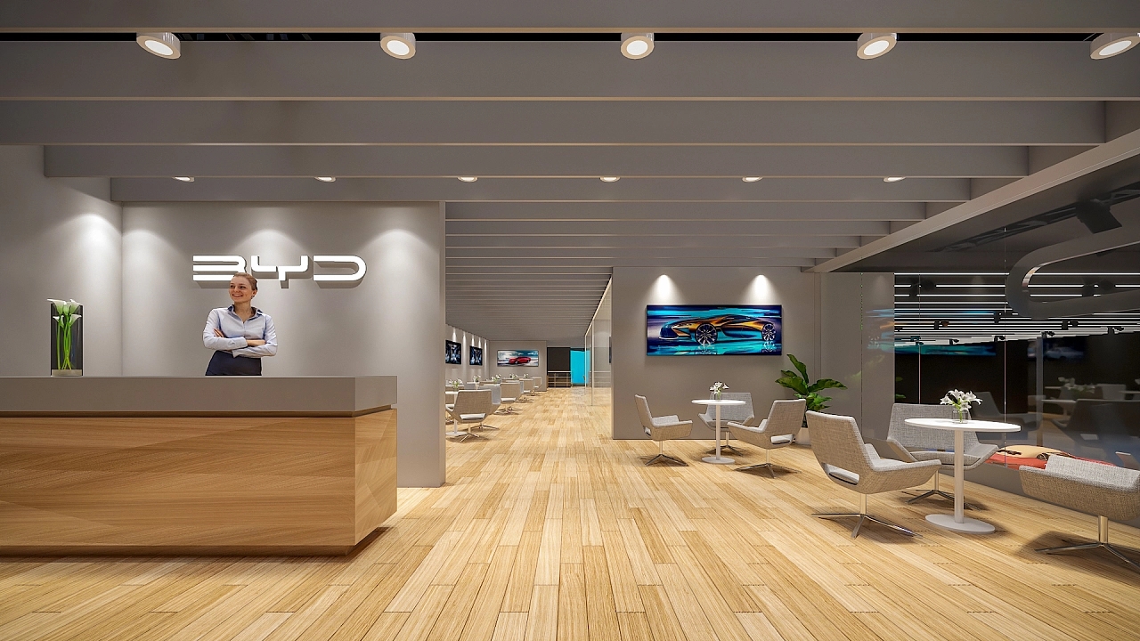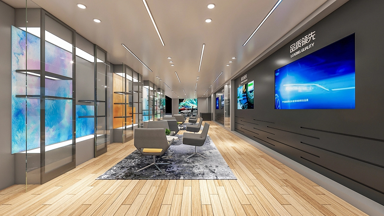 比亞迪該車展展臺整體造型非常的炫酷,頂部造型通過眾多燈光條的延伸,讓參展的觀眾能集中他們的視線焦點,使得該展位在展館眾多展臺中脫穎而出,一樓為車展展示車輛和接待區,二樓布置了洽談區和吧臺,讓展會觀展的客戶能體驗到優秀的服務,提高會展中的成交量。